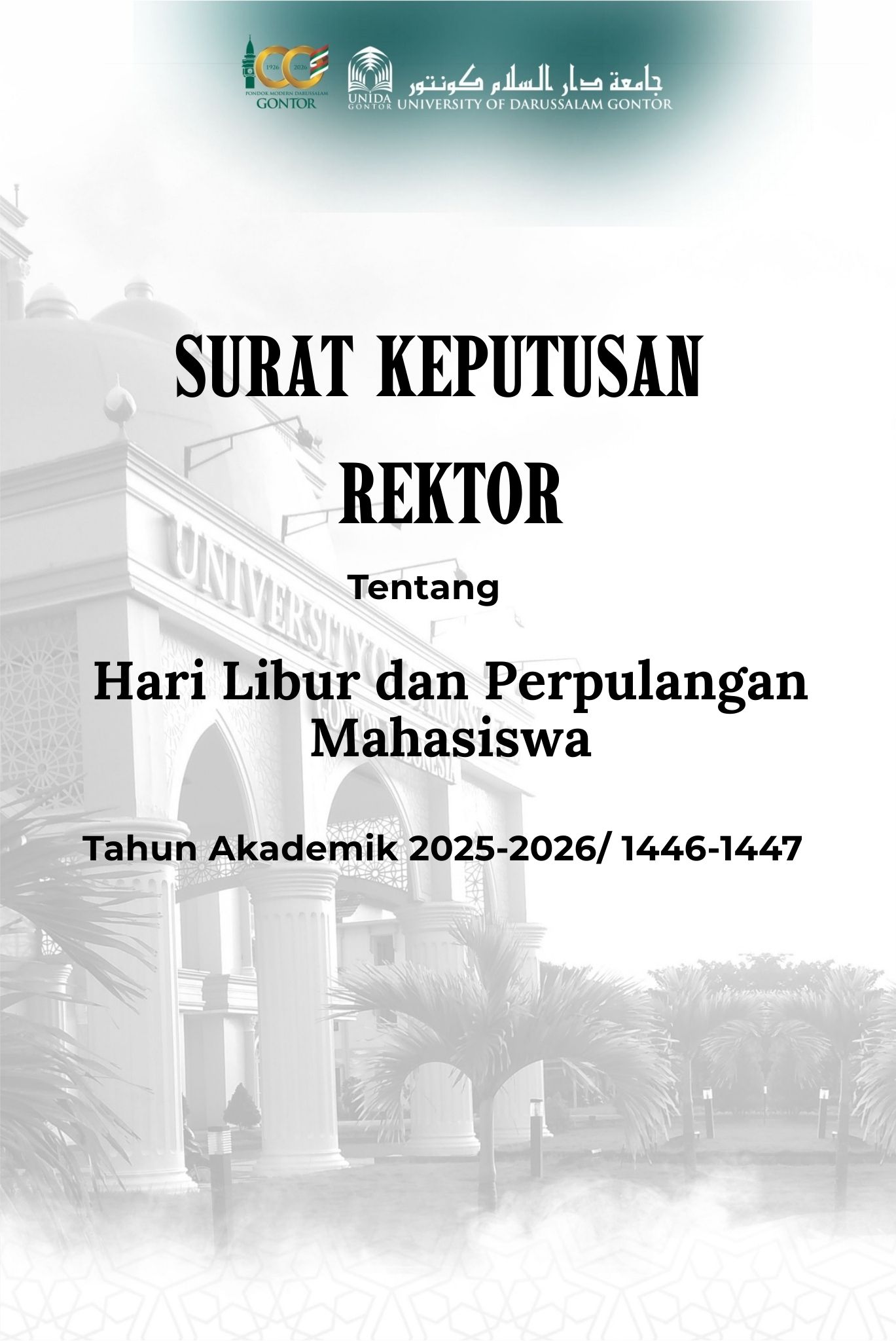 SK Rektor Tentang Hari Libur dan Perpulangan Mahasiswa